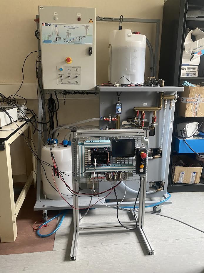 Ce projet avait pour objectif de développer un système automatisé permettant de récupérer les données envoyées par une cuve d'eau (Niveau d’eau et Débit de distribution gravitaire) et de contrôler les vannes de cette cuve grâce aux sorties analogiques d'un automate programmable afin de pouvoir réaliser un asservissement par rapport au niveau d’eau. L'automatisation de ce processus vise à améliorer l'efficacité et la précision de la gestion des ressources en eau, tout en réduisant les interventions manuelles. Le système proposé intègre des capteurs pour la collecte des données et des actionneurs pour le contrôle des vannes, le tout supervisé par un automate programmable et ses modules d’entrées et sorties analogique qui assure la coordination et le traitement des informations en temps réel. Nous détaillerons la procédure de mise en œuvre de ce projet un peu plus loin.